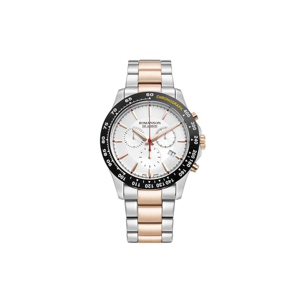 The Romanson CA1B18HMJWH blends modern precision with timeless elegance. It features a 42mm stainless steel case and a two-tone silver & rose-gold bracelet, creating a sophisticated style perfect for both professional and casual wear.