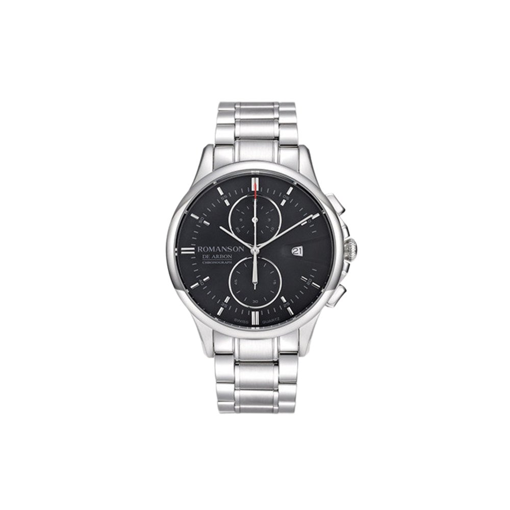 The Romanson CA5A09HMWBK Men’s Chronograph Watch is a perfect blend of elegance and precision. Designed with a 43mm stainless steel case and a matching bracelet, it offers both durability and timeless style. The bold black dial with chronograph subdials adds a modern touch while ensuring accurate timekeeping.