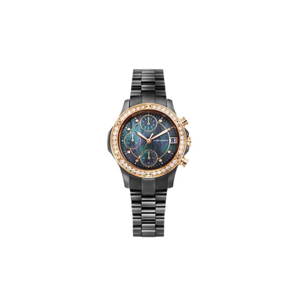The stunning blue mother-of-pearl dial adds a sophisticated touch, complemented by three functional chronograph sub-dials and a convenient date window. Scratch-resistant sapphire glass ensures long-lasting clarity and durability. Powered by Swiss quartz movement and offering 3 ATM water resistance, the Romanson RM7000QLKBK blends high-fashion design with reliable performance.