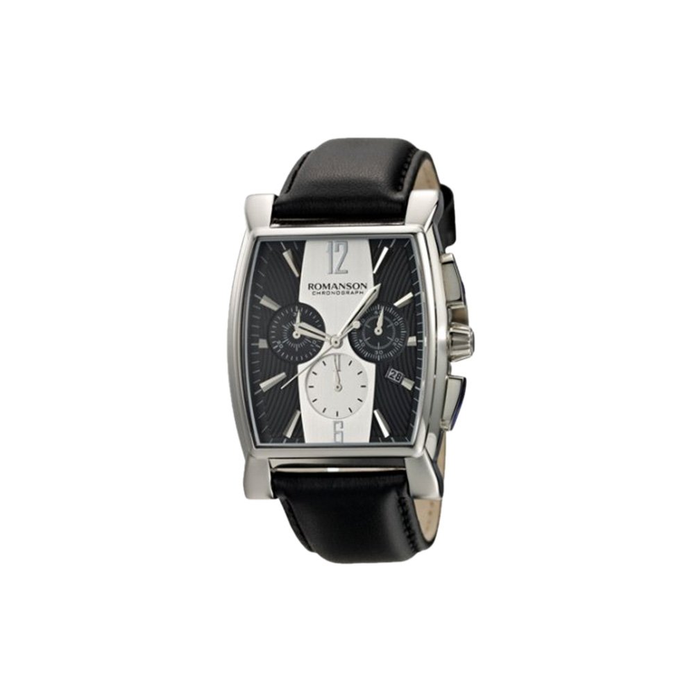 Embrace a classic and powerful look with the Romanson TL1249HMWBK Men’s Watch. It features a large 36×50 mm rectangular silver-tone stainless steel case and a comfortable black leather strap.