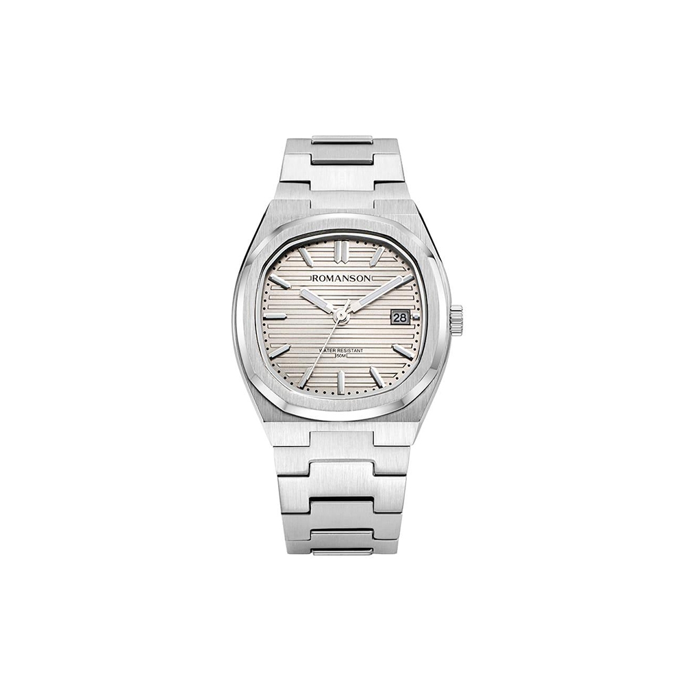 Discover the bold, modern design of the Romanson TM3BF008MMWGY watch—a perfect balance of style and functionality. It features a 38 mm octagonal stainless steel case paired with a seamlessly integrated bracelet, giving it a sleek and contemporary appeal.