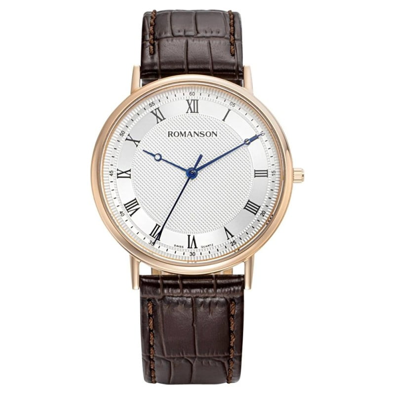 Dive into sophistication with this timeless timepiece. The striking white dial, paired with a genuine leather strap, exudes both elegance and versatility. Precision analog movement ensures accurate timekeeping, making this Romanson watch the perfect blend of style and functionality. Elevate your wristwear with a touch of classic charm.